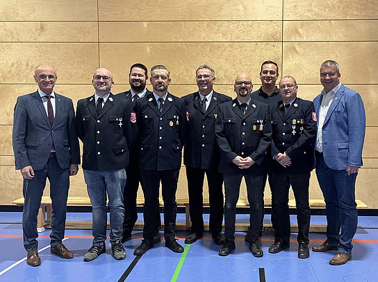 Aktive Feuerwehrleute wurden für 25 bzw. 40 Jahre aktiven Dienst geehrt.