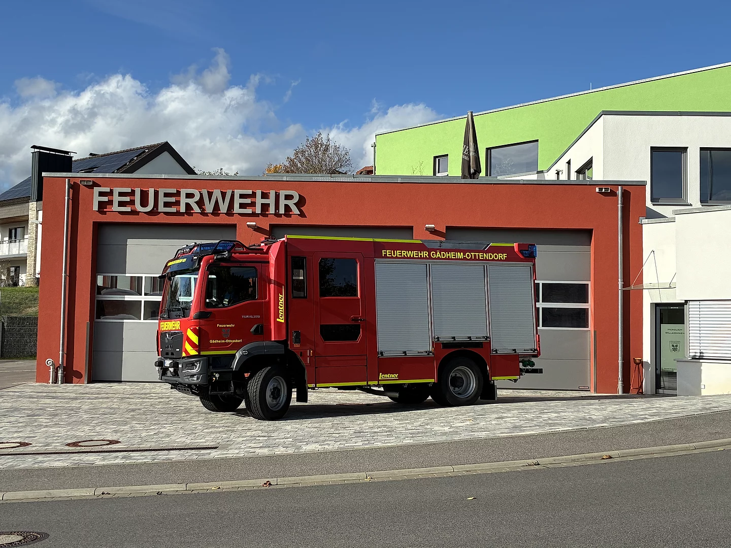 Am Montag, 20.10.2025 konnte die Feuerwehr Gädheim-Ottendorf ihr neues Hilfeleistungslöschfahrzeug HLF10, das bei der Firma Lentner auf einem MAN-Fahrgestell aufgebaut wurde, abholen und einer großen Besucherschar an der heimischen Feuerwehrhalle präsentieren.